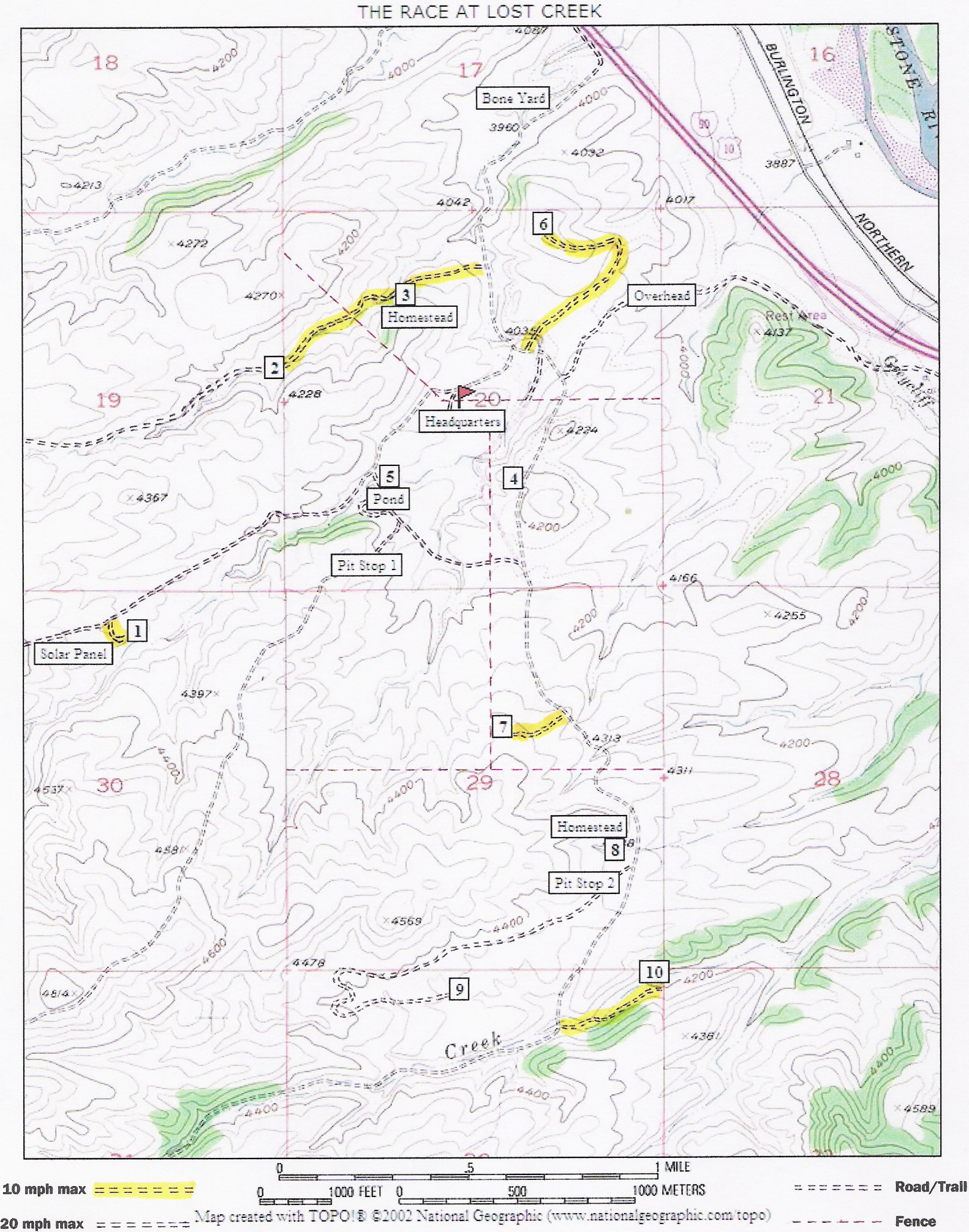 You may want to familiarize yourself with a map of the ranch and the race course. Please make special note of the speed limits! You can click on the lower right hand corner of the Map to zoom in.